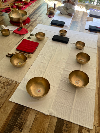 for a deeply relaxing group session featuring singing bowls, gongs, handpan, and guided chanting. Experience profound relaxation, energy balance, and inner harmony.